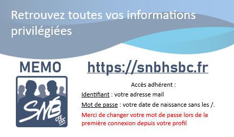 Bonjour à toutes et à tous,En 2020, le paysage de vos instances sociales va changer chez HSBC France.En effet, les Ordonnances Macron vont transformer la forme actuelle de représentation des collaborateurs. Ainsi les Délégués du Personnel (DP), les Comités d’Hygiène de Sécurité et des Conditions de Travail (CHSCT), les Comités d’Etablissements (CE) et le Comité Central d’Entreprise (CCE) disparaissent.Place, désormais au Comité Social et Economique «CSE» instauré par les Ordonnances Macron pour concentrer l’ensemble de toutes les prérogatives de représentation du personnel à compter du 1er Janvier 2020, chez HSBC France.Ce nouveau paysage social va se composer désormais d’un «CSE» national composé de 32 sièges et de 53 Représentants de Proximités « RP » désignés par le CSE dans chaque zone géographique correspondant à 2 groupes RBWM et qui auront en charge, en ce qui les concerne, de porter les réclamations individuelles et d’intervenir dans le domaine de la santé.Les cartes vont donc être redistribuées mais nous savons que vous les avez toujours en main. A vous, lors des futures élections professionnelles (date non encore définie) d’élire vos Membres SNB qui auront la responsabilité de représenter vos intérêts, gérer les activités sociales et culturelles et de désigner les «Représentants de Proximité».Pour cela, nous comptons dès aujourd’hui sur vous, en tant qu’adhérent au SNB – unique Syndicat Professionnel de la Banque - afin de nous aider à développer votre réseau car plus nous serons nombreux au SNB, plus nous pourrons porter votre voix dans le futur dialogue social à instaurer chez HSBC France.Nous comptons sur vous, en vous remerciant par avance,Bien cordialement,