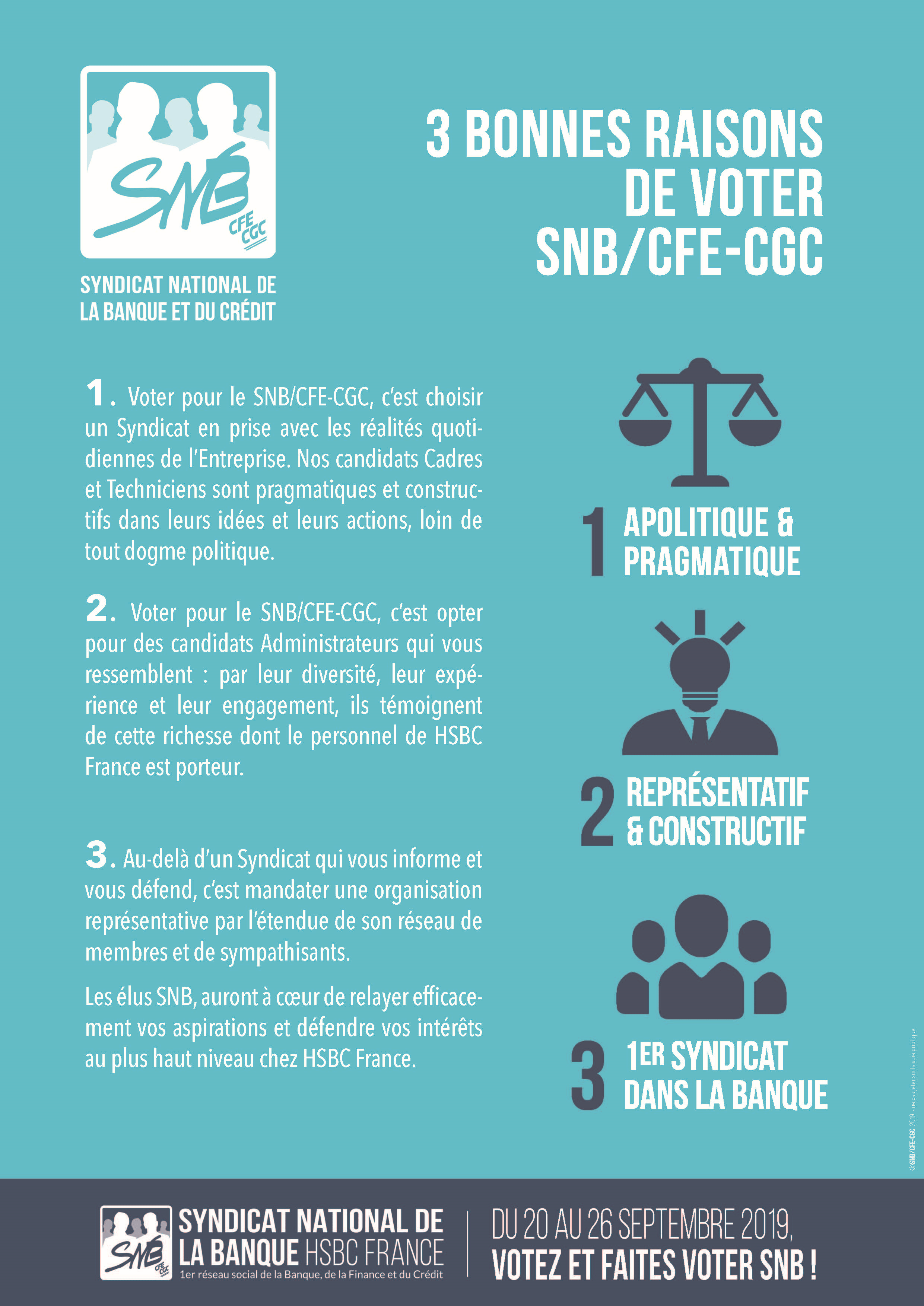← Retour aux actualités Actus NATIONALES · 11 septembre 2019 Élection de vos administrateurs salariés / Tract SNB Équipe SNB HSBC CE Délégation nationale Actus NATIONALES administrateur election salariés Accédez à tous nos contenus en rejoignant l'espace adhérent. Accéder à l'espace adhérent