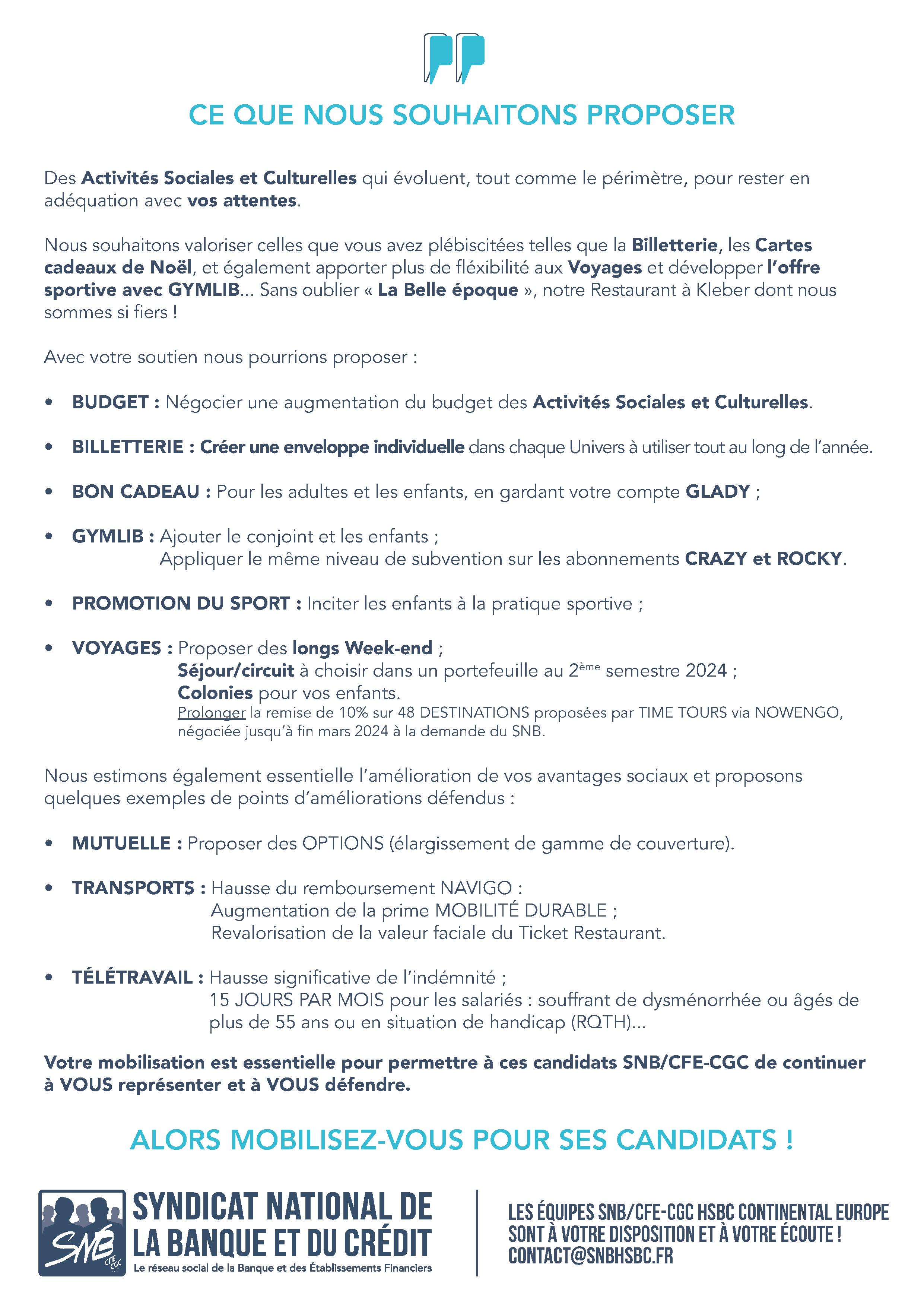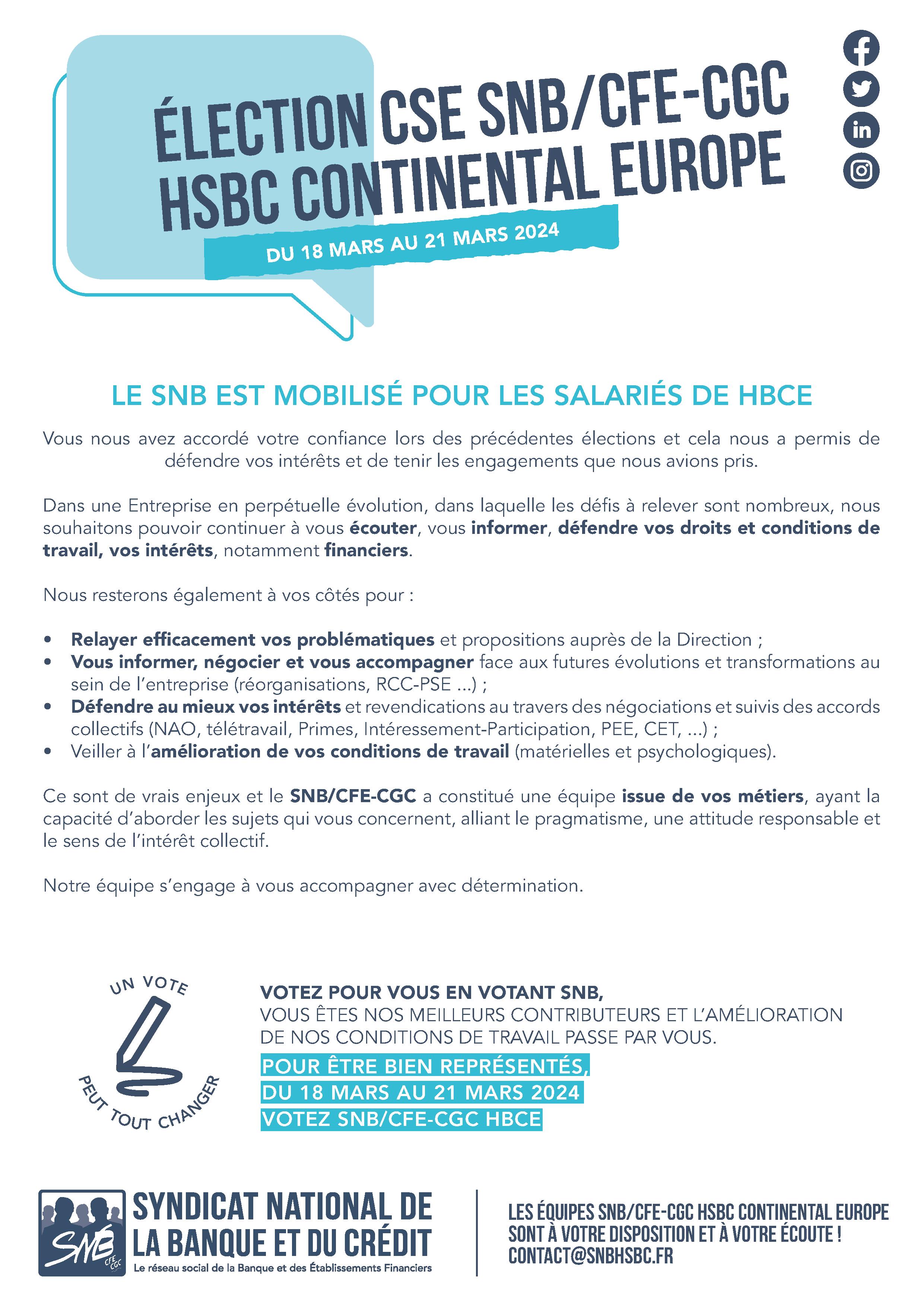 ← Retour aux actualités Élections · 8 mars 2024 ELECTION, LE PROGRAMME DU SNB SNB Équipe SNB HSBC CE Délégation nationale Élections Accédez à tous nos contenus en rejoignant l'espace adhérent. Accéder à l'espace adhérent
