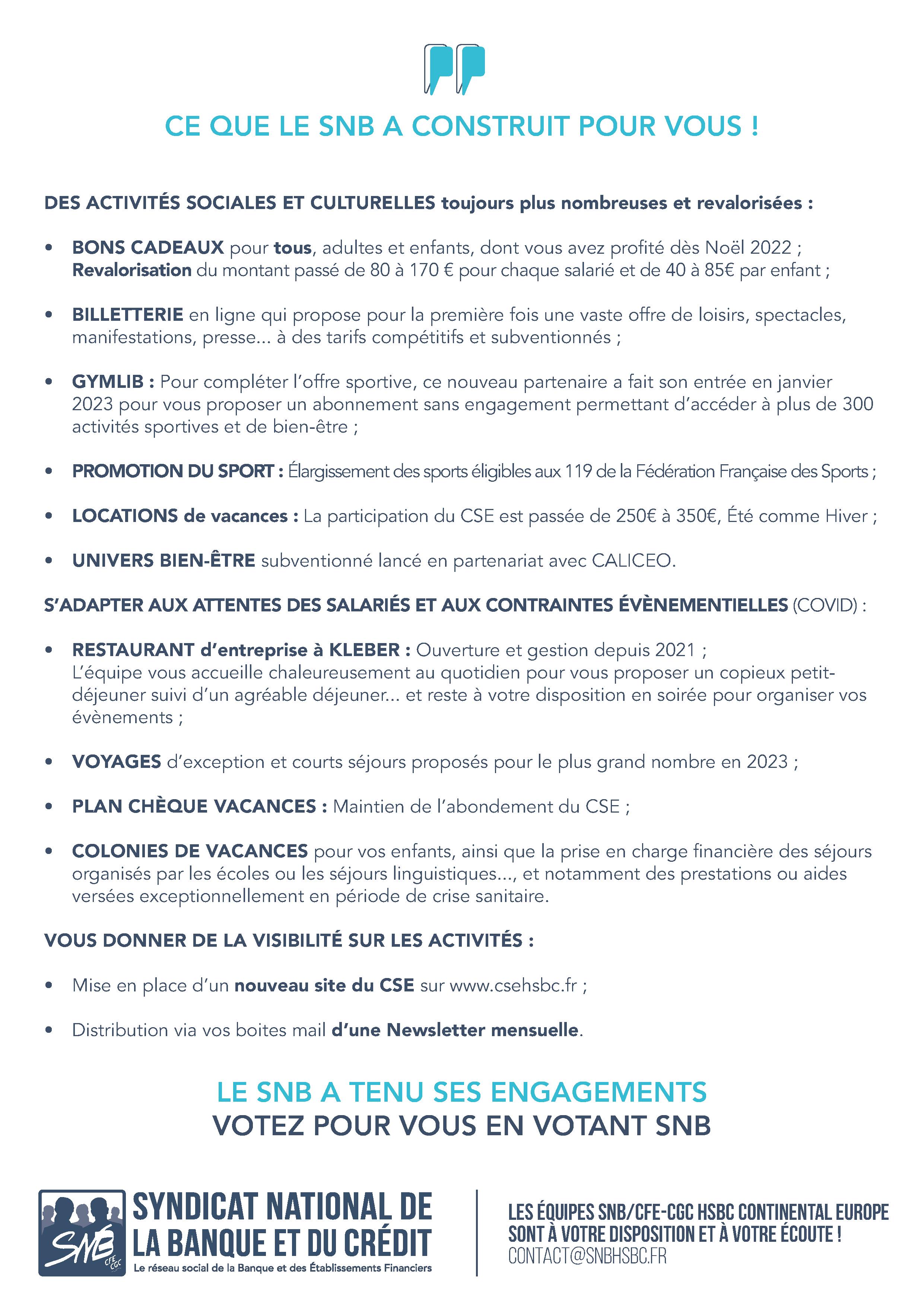 ← Retour aux actualités Élections · 5 mars 2024 ELECTIONS, LE BILAN DU SNB SNB Équipe SNB HSBC CE Délégation nationale Élections Accédez à tous nos contenus en rejoignant l'espace adhérent. Accéder à l'espace adhérent