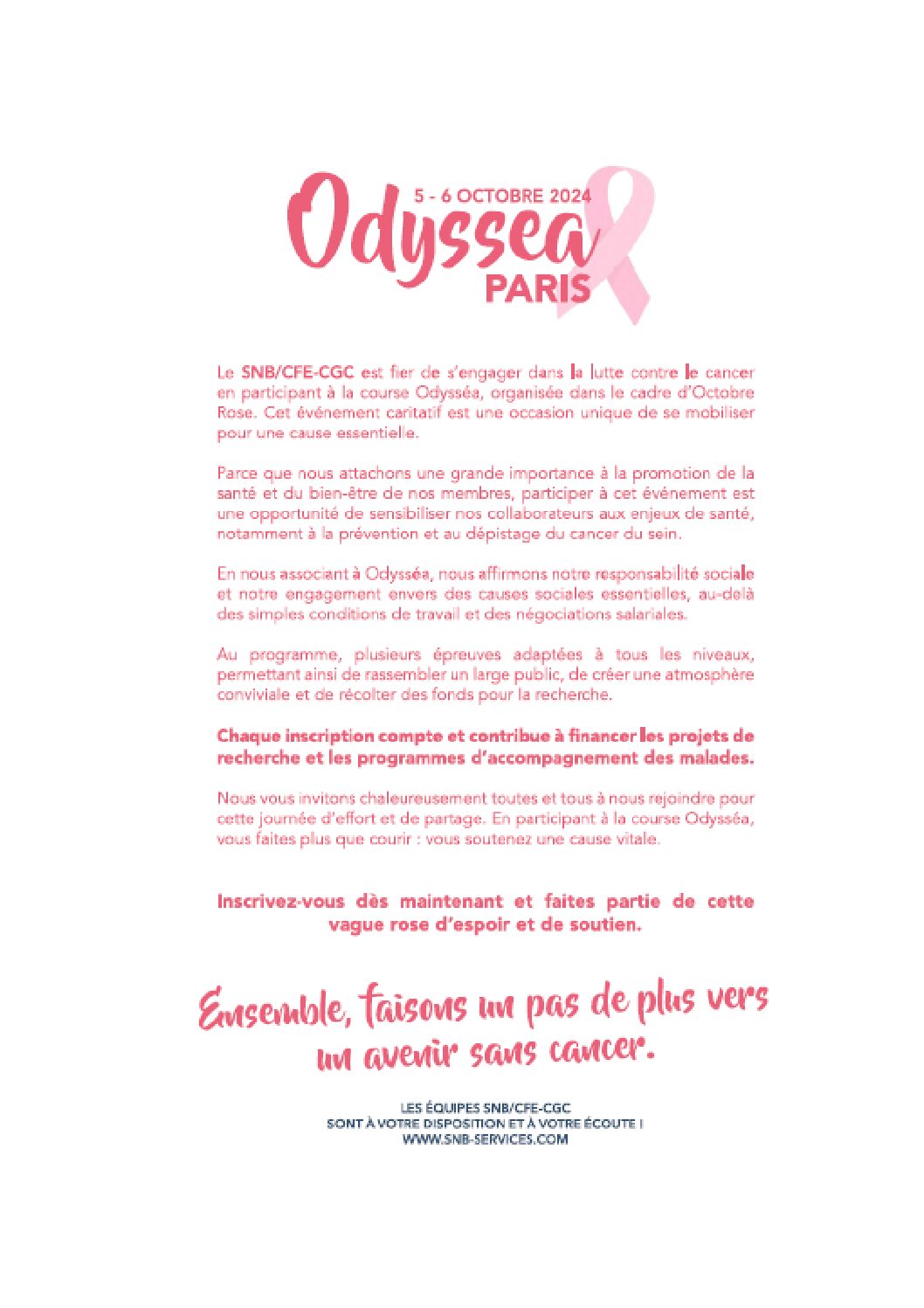 ← Retour aux actualités Compte-Rendus · 27 août 2024 ODYSSEA - COURIR contre le CANCER avec le SNB ! SNB Équipe SNB HSBC CE Délégation nationale Compte-Rendus Accédez à tous nos contenus en rejoignant l'espace adhérent. Accéder à l'espace adhérent